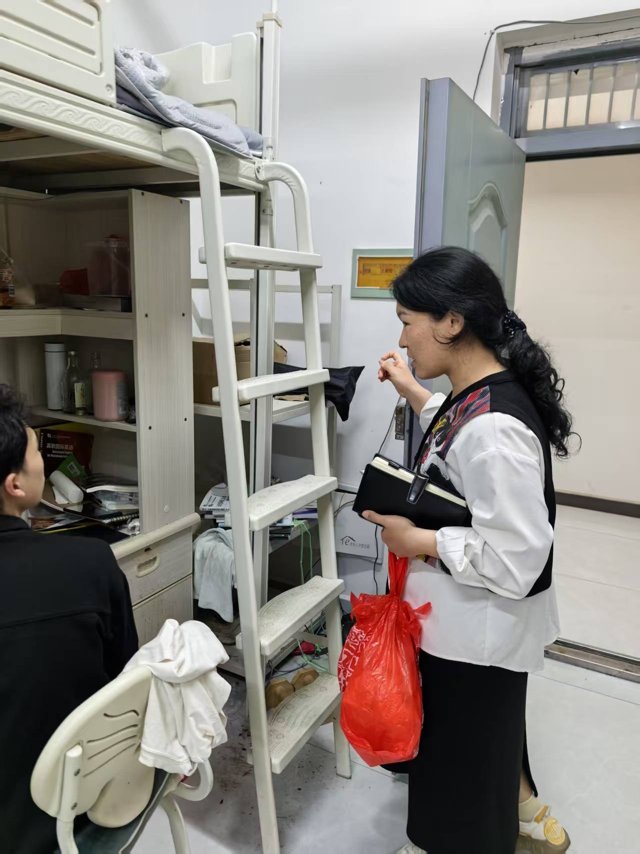 在走访过程中,14名党员严格按照支部“四亮三联”工作要求,科学合理地分为七组,深入“一站式”学生社区及“联系宿舍”,以亲切的“拉家常”方式与学生进行谈心谈话,为学生答疑解惑。大家始终坚持“三联”导向,聚焦学生的思想动态、实际需求与成长发展,耐心倾听学生心声,细致梳理学生在生活保障、学业提升等方面亟待解决的难题。与此同时,提醒学生高度重视宿舍用电安全、消防安全和人身财产安全,鼓励学生踊跃参与校园文化活动、志愿服务和技能竞赛,着力营造团结友爱、积极向上的校园良好风尚。