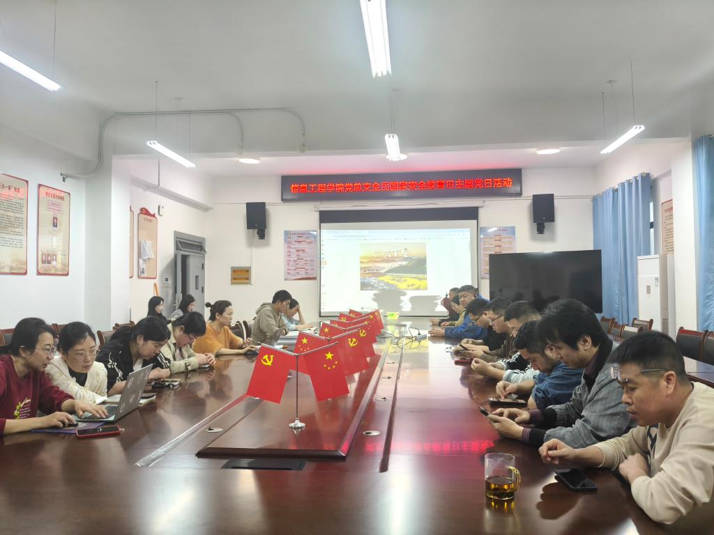 本站讯(信息工程学院 易文意)为切实增强全院党员国家安全意识和法治素养,4月14日,信息工程学院党总支组织全院党员开展“全民国家安全教育日”主题党日活动。