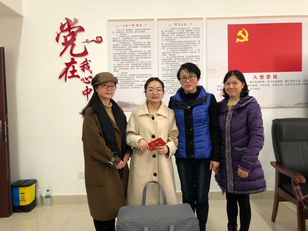 下午5点,刘江毅、刘海云带领学工干事、班主任驱车前往上高县,送17大涉外学前班学生张怡婧同学回家。张怡婧的父亲于2019年12月初遭遇车祸致脑死亡,使得本就一贫如洗的家庭更是雪上加霜。刘江毅一行人来到了上高县人民医院探望了张怡婧的父亲,并带去了学校的关心和慰问金。她亲切地叮嘱张怡婧一定要乐观积极,不能被困难打败,要相信在大家的帮助下,一定能照顾好父母亲,并开创美好的明天。张怡婧的母亲及亲人对学校以及学院领导的到来表示非常感动。