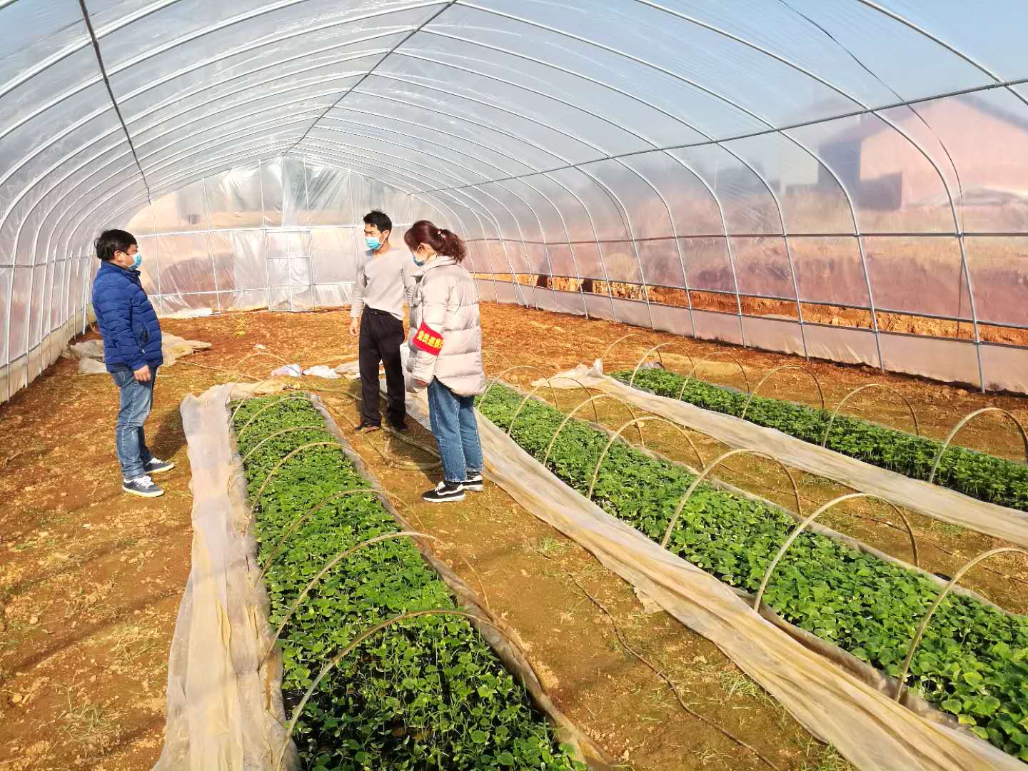 他和宜春市史志办驻村工作队队员易劭宜特意来到村里扶贫产业“蔬菜大棚种植基地”,了解该基地生产进度及受疫情影响、交通管制等对生产的影响和损失。基地付总告诉他们,因为交通限制,肥料、薄膜等购买不到,无法移植育苗,错过了最佳种植时间,造成的经济损失约8万元。杨敏同志即刻表示,尽力和镇里协调,帮助他外出购买生产需要的物资,不能耽误生产。