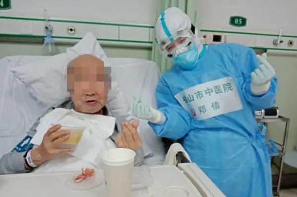 还有一位84岁的老爷爷,刚入院时生活无法自理,经过我们的治疗和护理,现在吃饭的动作越来越麻利了,还可以自己喝粥、吃馒头、剥鸡蛋壳。我在旁边鼓励他:“爷爷真棒!”他开心得像个孩子一样,也为我们竖起了大拇指!