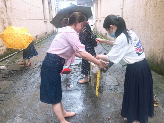 梅雨六月,天气潮湿闷热。活动中,各位党员同志积极发扬奉献精神,不怕脏、不怕累,在雨中奋力清扫,不放过任何一个卫生死角,跳入杂草丛生的花坛中清扫生活垃圾,同时不忘做好垃圾分类,把清扫工作落实到位。