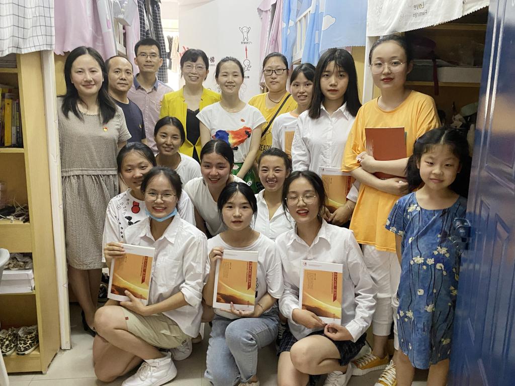 为更深入了解同学们的生活学习,党员教师们来到5栋宿舍,热心地与同学们交谈,并将一些书籍赠送给了各寝室同学。彭慧洁老师介绍了书籍内容,希望同学们能从好书中吸取营养,既读有字之书,也读无字之书,学习做人、求知、生活。最后,党员和同学们拍照留念,为此次活动画上了完美的句号。