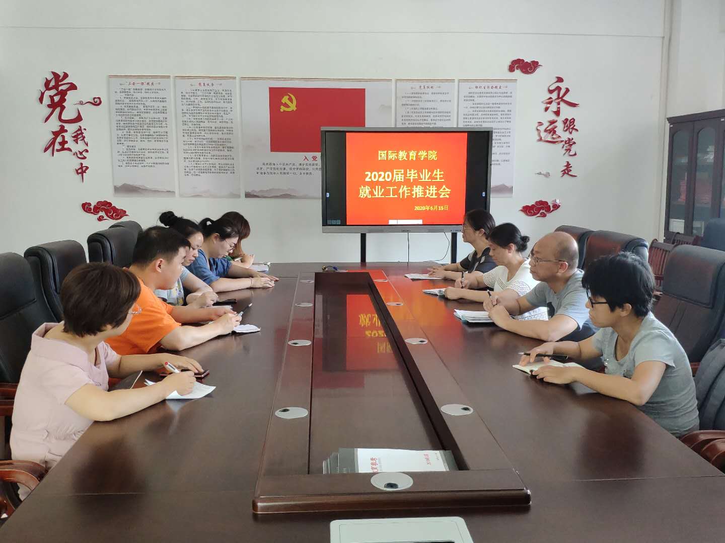 本站讯(国际教育学院 杜欣宇)为落实英国上市公司365就业工作安排,推动本院就业工作进度,6月15日,国际教育学院在科技综合楼401召开了20届毕业生就业工作推进会,院长韩菁,党总支书记刘海云,副院长肖勇,以及其他就业小组成员、20届毕业生班主任及辅导员共同出席了本次推进会,会议由院长韩菁主持。