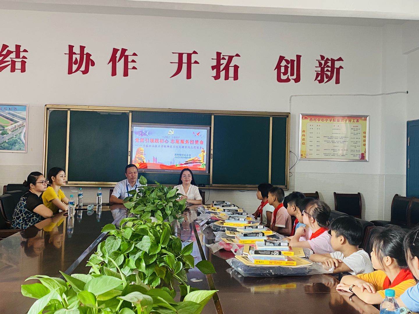 9月8日下午,师范学院党总支副书记饶丽、团总支书记杨文姝等师生一行来到宜春市西村镇中心小学,开展“党团引领践初心志愿服务担使命”文明实践志愿服务活动。