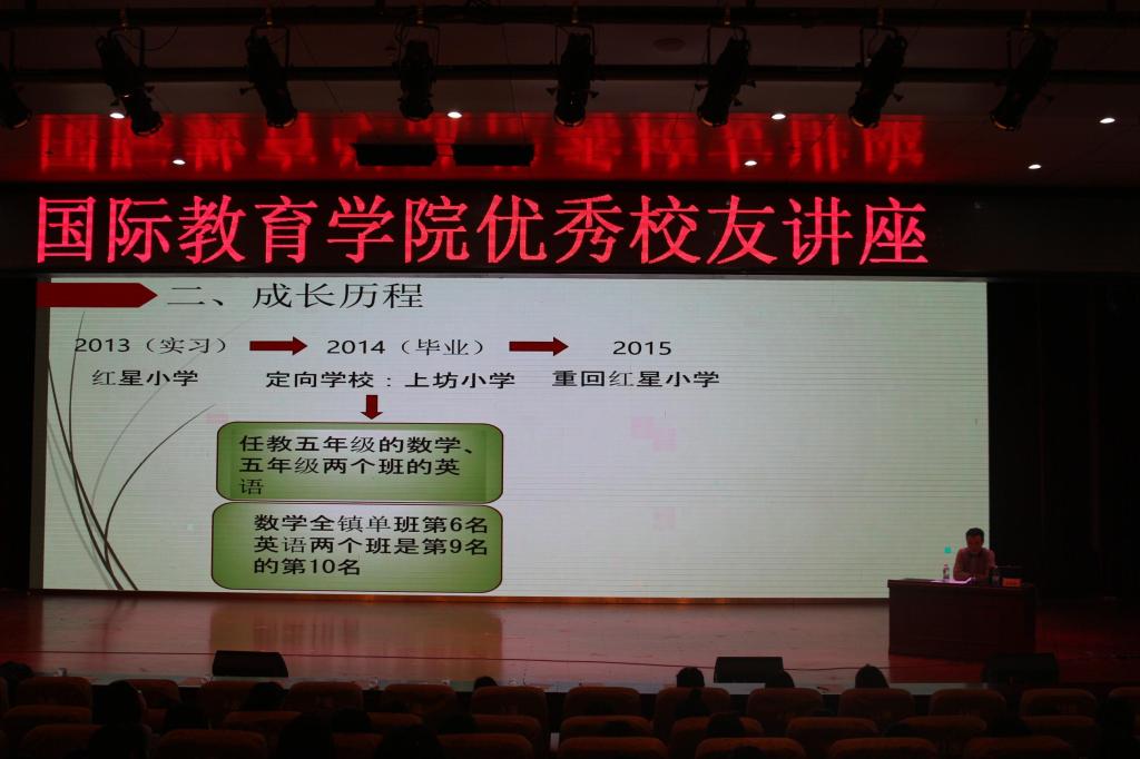 本站讯(国际教育学院 周沫利)为增强我院新生对专业的认同感,帮助新生规划好职业生涯,国际教育学院于2020年10月16日上午在科技综合楼二楼学术报告厅面向2020级全体新生开展“优秀校友讲座”活动,讲座主讲嘉宾为我院2010届毕业生陶鑫、2014届毕业生龙瑞勤。国际教育学院党总支书记刘海云、院长韩菁、副院长肖勇以及新生班班主任了出席本次活动。