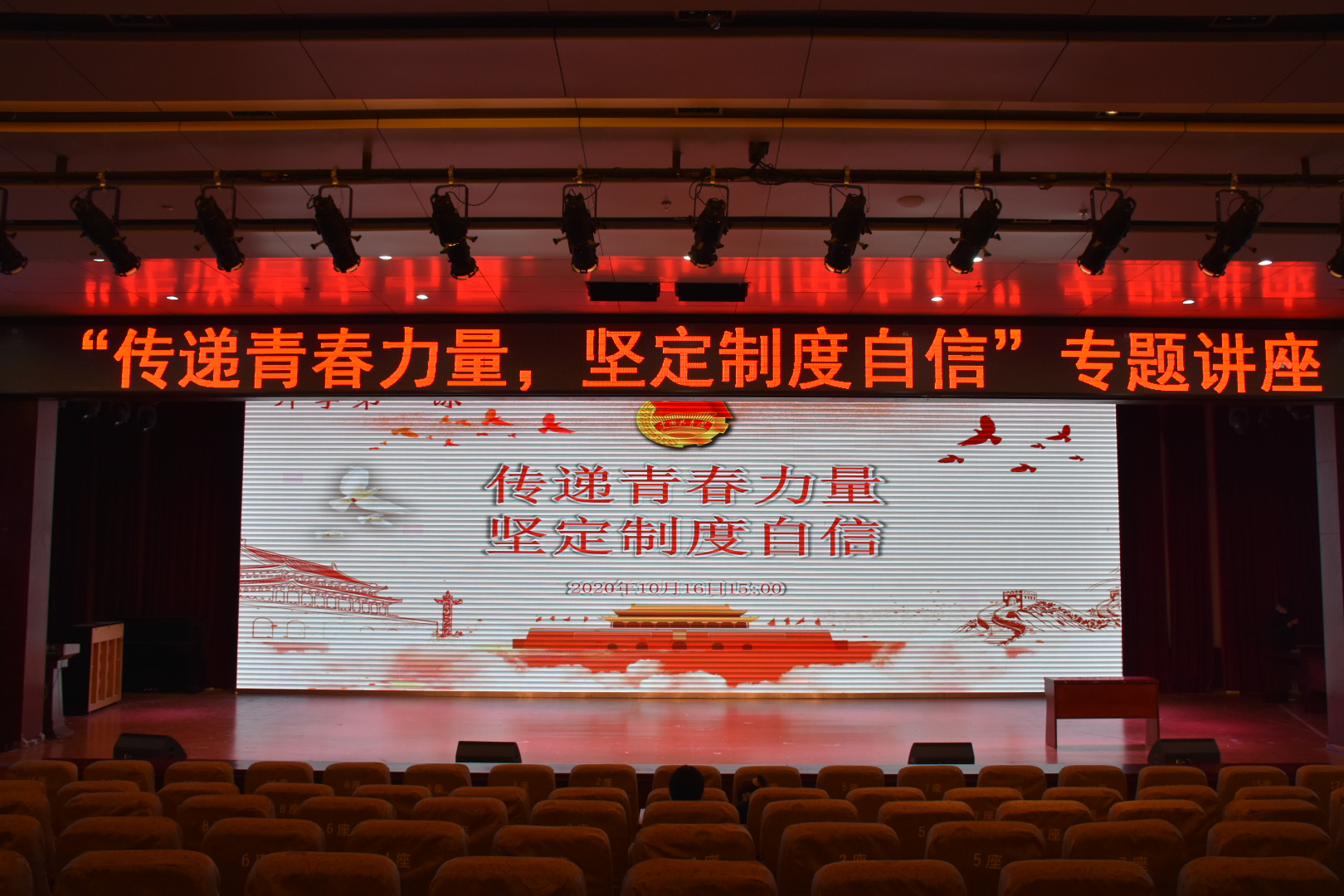 本次“开学第一课”专题讲座活动的开展,旨在把制度自信的种子播洒进青年学子的心灵,营造“奉献小我,成就大我”的浓厚氛围,深化制度自信教育,激励和引导广大青年树立榜样意识、向模范看齐,在时代大考里诠释青年担当,贡献青春力量。
