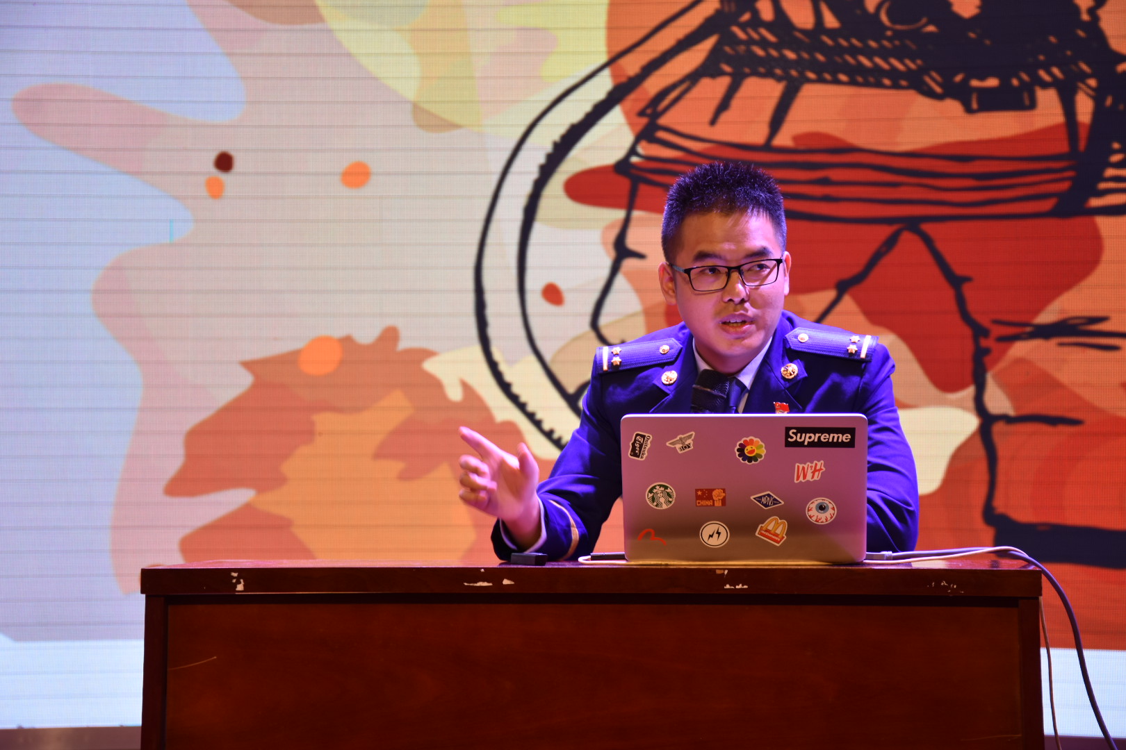 活动伊始,邹海斌首先从中国抗疫的磅礴力量、中国的制度优势、中国的两大奇迹、中国的制度自信这四个方面展开宣讲。他强调:疫情期间党中央果断决策,全国人民齐心抗疫,中国的抗“疫”斗争展现了中国精神、中国力量、中国担当,充分体现了我国的制度优势,并阐明制度自信就是对国家社会制度的认同、坚守和捍卫。同时呼吁广大青年要争做有志青年,将个人理想融入国家事业,绽放青春光彩。