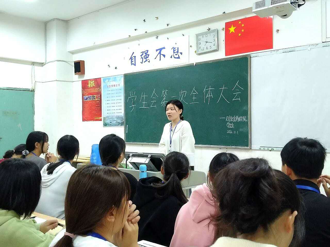 本站讯(财会金融学院 邹涛 学生记者 黄钦婷 易新琴)为了使院学生会各部门的新老成员在新学期能快速熟悉认识、更好地推动本学期学生会工作。11月1日,财会金融学院在一教楼中404教室召开了第一次学生会全体大会,到场人员有财会金融学院学生会全体成员,会议由学生主干严晓春主持,潘骁哲老师到会指导。