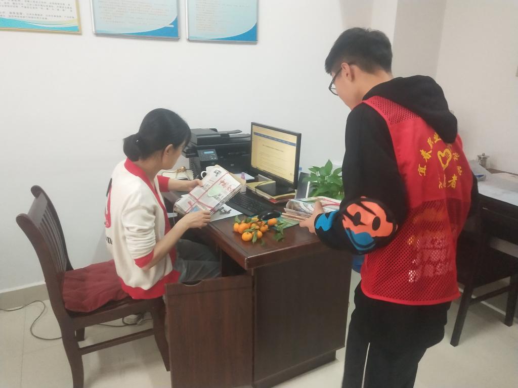 下午4时,身穿青年志愿者马甲的同学们到达邮政大厅门口,将报刊、书籍分类整理好,并细心贴上写有祝福语的“爱心便签”。他们礼貌地向老师问好,并将报纸一一送到老师们手里,老师们接到报纸后充分肯定了志愿者们的辛勤付出和劳动成果。冬日暖阳下,红衣点缀着的挺拔身姿为书香四溢的校园增添了别样的色彩。活动接近尾声,全体学生志愿者在邮政大厅门口合影留念。至此,11月份“爱心派件”活动圆满结束。
