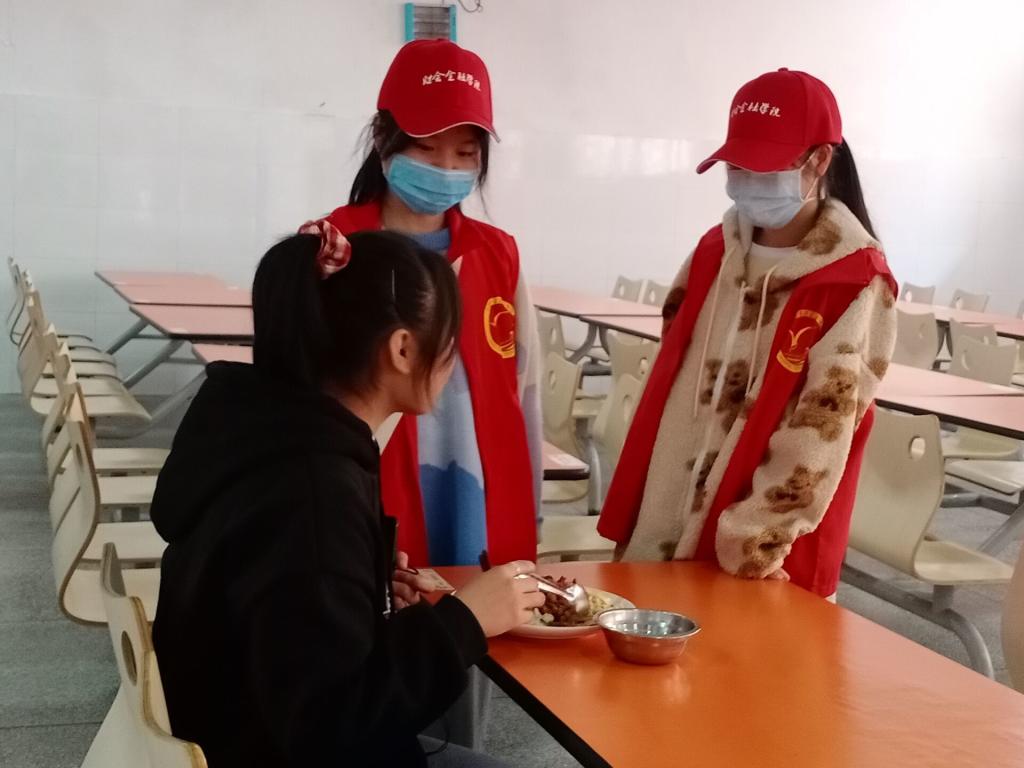 “一粥一饭,当思来之不易,半丝半缕,恒念物力维艰。”为让光盘行动深入人心,引导同学们将节约粮食的意识化入行动中去。青年志愿者协会的成员们早早就来到第一食堂,身穿红色志愿服,对进入食堂吃饭的同学们进行宣传,他们穿梭在食堂中,耐心向同学们倡议,并对做到光盘的同学赠予小礼物。