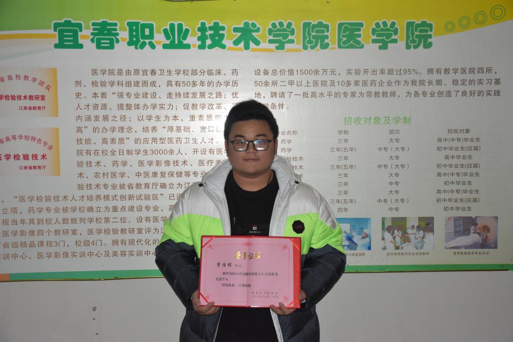 医学院学生李佳程荣获共青团宜春市委”抗击新冠疫情青年志愿服务先进个人”