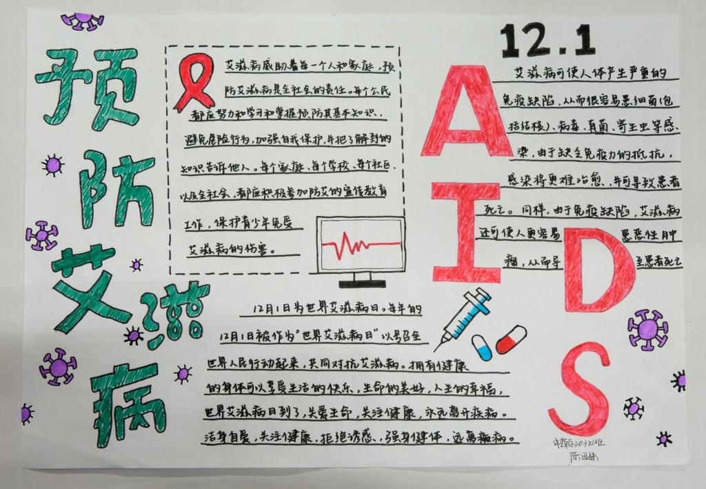 为提高学生预防艾滋病的意识,增强预防艾滋病的技能,树立社会责任意识和正确的道德观,培养文明建康的生活方式,促进青年学生的健康发展,医学基础部组织护理学院和医学院学生开展“预防艾滋,共建美好校园”手抄报比赛活动,通过这次活动,提高了学生防艾意识和抗击疫情能力,激励了同学们为社会防疫抗艾贡献青春力量。