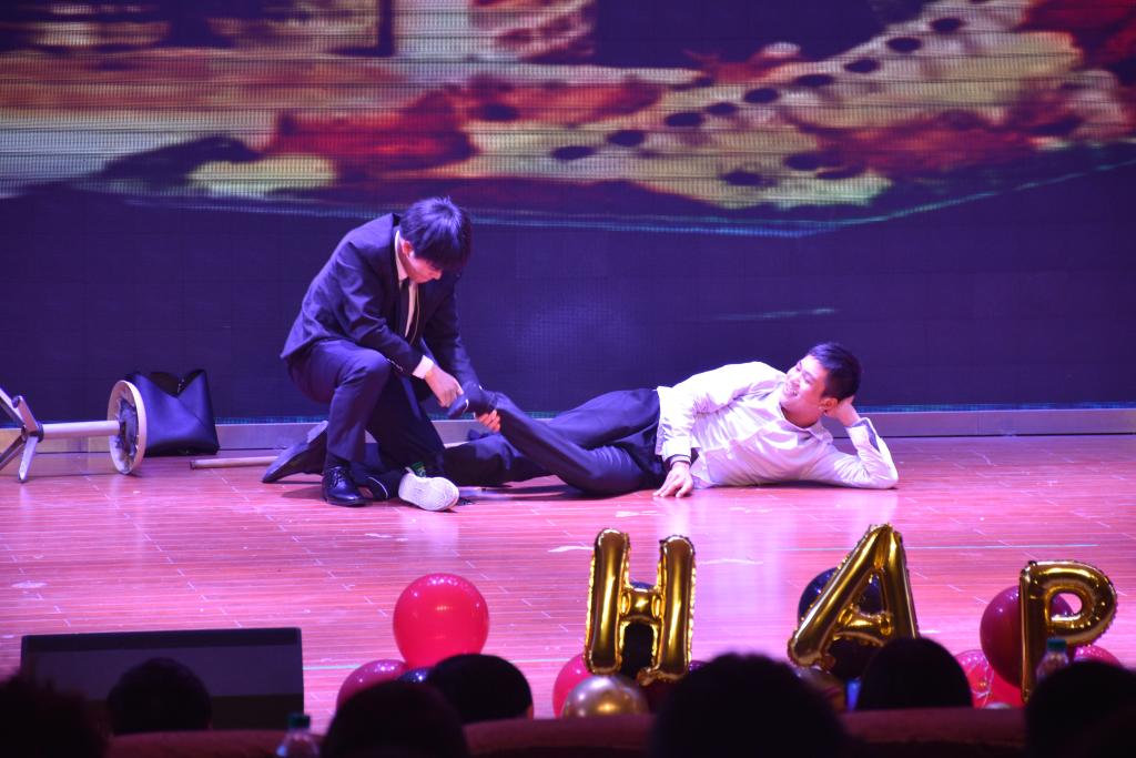 晚会在全体学生会工作人员们表演的充满活力、激情四射的开场舞中拉开序幕。之后由四位主持人介绍到场的领导及嘉宾后,机电与新能源汽车学院院长丁国香上台发表了热情洋溢的讲话,她对2020年我院全体师生取得的成绩表示肯定,并希望在新的一年里,全院师生能够再接再厉,争取在新的一年里取得更加辉煌的成绩。随后晚会正式开始,本次活动共有十四个节目参与演出。晚会形式多样,由经开校区广播站的同学们带来的朗诵《中华颂》将民族风采展现的淋漓尽致;《校园生活》、《乌龙快递》、《时光按钮》、《机电ZH545航班》这些小品笑料满满又富有深意的,还有《你是我的眼》等风格各异的歌曲;更有惊艳的爵士舞《HIP》和李润老师与陈少吕同学表演的吉他弹唱《安和桥》,周勤老师还为我们带来了一段优美的萨克斯重奏《美丽的神话》,整个晚会现场的气氛温馨而又活跃。莅临晚会现场的老师们也毫不逊色合唱了一曲《伤心太平洋》,令现场的气氛推上了高潮,最后伴随着一首《真心英雄》,晚会在观众们的意犹未尽中落下帷幕。