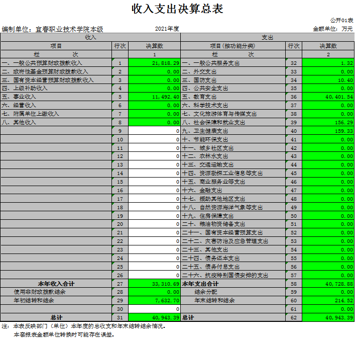 本单位2021年度收入总计40943.39万元,其中年初结转和结余7632.7万元,较2020年增加3301.03万元,增长8.77%;本年收入合计33310.69万元,较2020年减少1773.09万元,下降5.05%,主要原因是:年末部分未完工项目经费暂时收回财政。