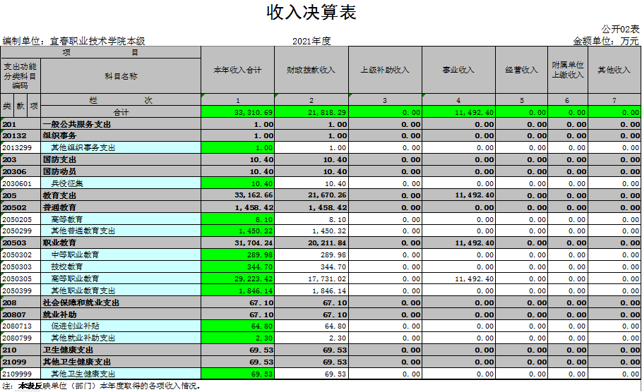 本年收入的具体构成为:财政拨款收入21818.29万元,占65.5%;事业收入11492.4万元,占34.5%;经营收入0万元,占0%;其他收入0万元,占0%。