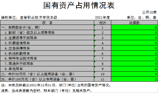 截止2021年12月31日,本单位(单位)国有资产占用情况见公开10表《国有资产占用情况表》。其中车辆中的其他用车主要是一般公务用车。