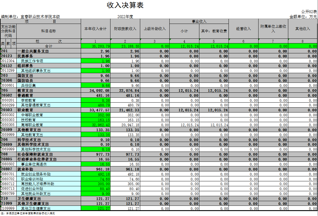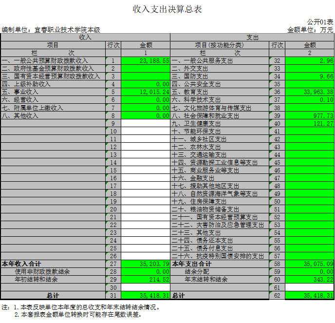 本单位2022年度收入总计35418.31万元,其中年初结转和结余214.52万元,较2021年减少7418.18万元,下降97.19%;本年收入合计35203.79万元,较2021年增加1893.1万元,增长5.68%,主要原因是:新校区搬迁完工项目加紧支付。