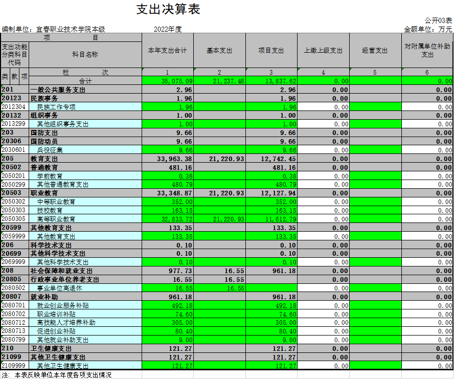 本单位2022年度支出总计35418.31万元,其中本年支出合计 35075.09万元,较2021年减少5653.79万元,下降13.88%,主要原因是:新校区搬迁工作陆续完工,工程款减少;年末结转和结余343.22万元,较2021年增加128.7万元,增长60%,主要原因是:去年由于新校区建设,支付大量项目工程款,今年新校区搬迁工作进入尾声,本单位支出恢复常态趋于平稳。