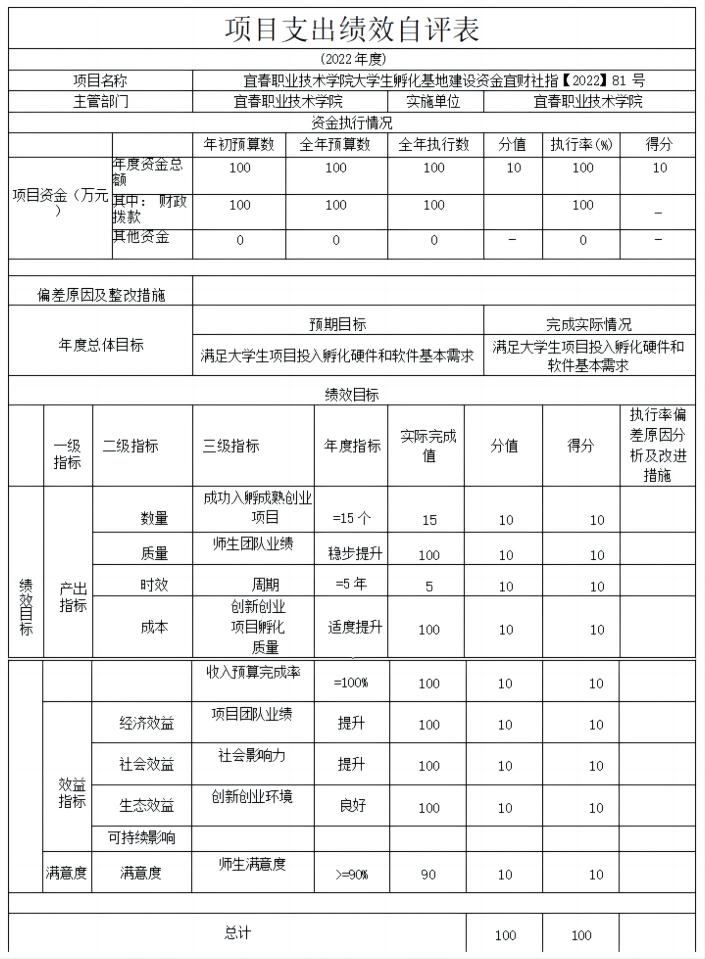 组织对“中央就业补助孵化基地建设补助资金项目”等1个项目开展了部门评价,涉及一般公共预算支出100万元,政府性基金预算支出0万元,国 有资本预算支出0万元。从评价情况来看,物业管理服务更加专业化规范化,校园环境更加优美,师生及家长的满意度高,提升校园形象更具吸引力。