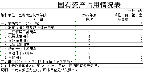 截止2022年12月31日,本单位国有资产占用情况见公开 10表《国有资产占用情况表》。其中车辆中的其他用车主要是一般公务用车。