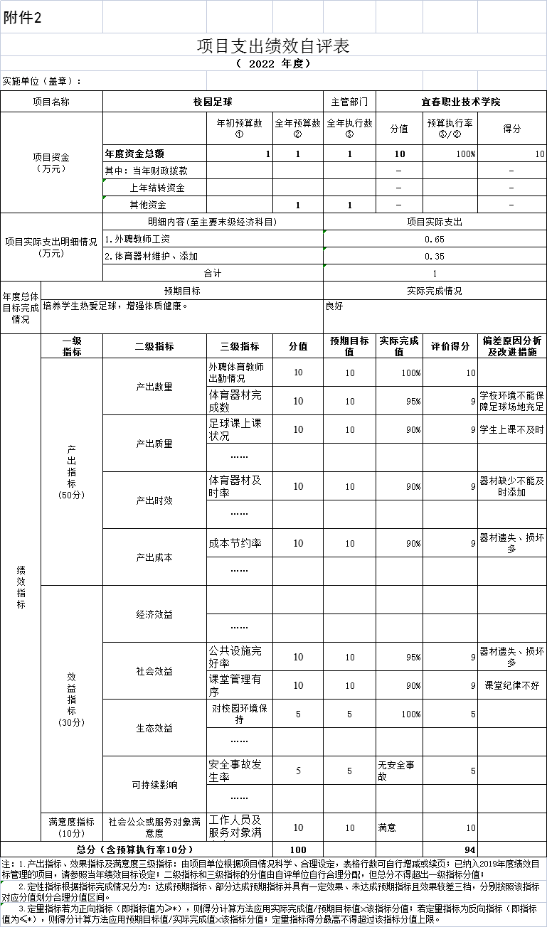根据预算绩效管理要求,我单位组织对纳入2022年度部门预算范围的二级项目2个全面开展绩效自评,共涉及资金11万元,占项目支出总额的27.8 %。