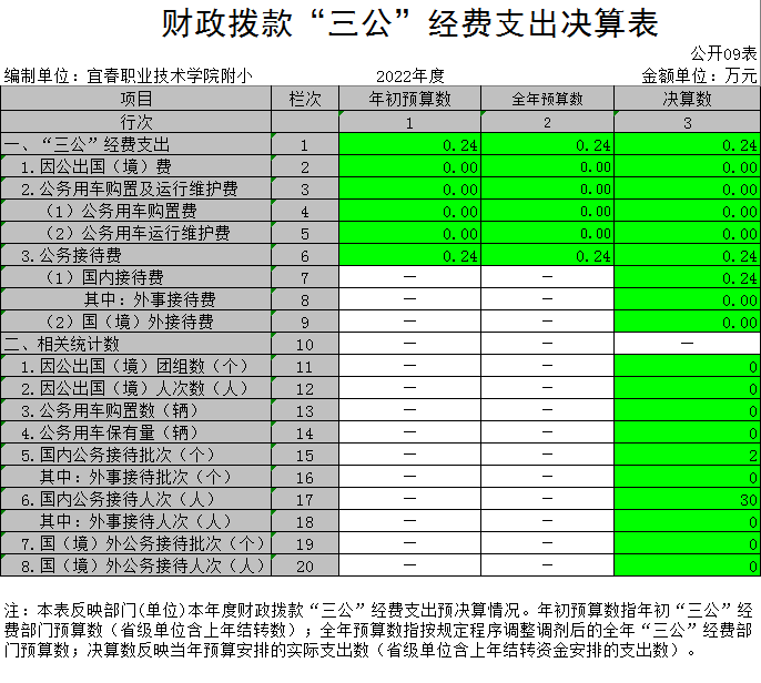 (二)公务接待费支出全年预算数为0.24万元,决算数为0.24万元,完成全年预算的100%,决算数较2021年增加(减少)0万元,增长(下降)0%,主要原因是无增减。决算数较全年预算数增加(减少)的主要原因是:三公经费只减不增。全年国内公务接待2批,累计接待30人次,其中外事接待0批,累计接待0人次,主要为:宜丰一小、高安幼专附小来英国上市公司365学习参观。