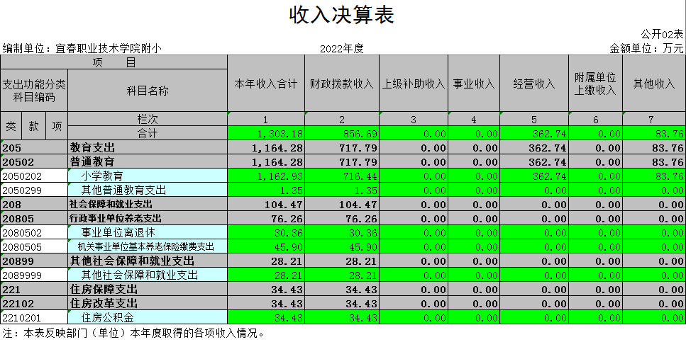 二、收入决算表