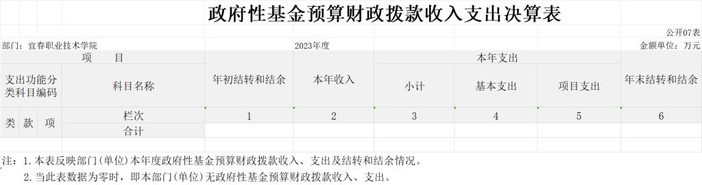 七、政府性基金预算财政拨款收入支出决算表
