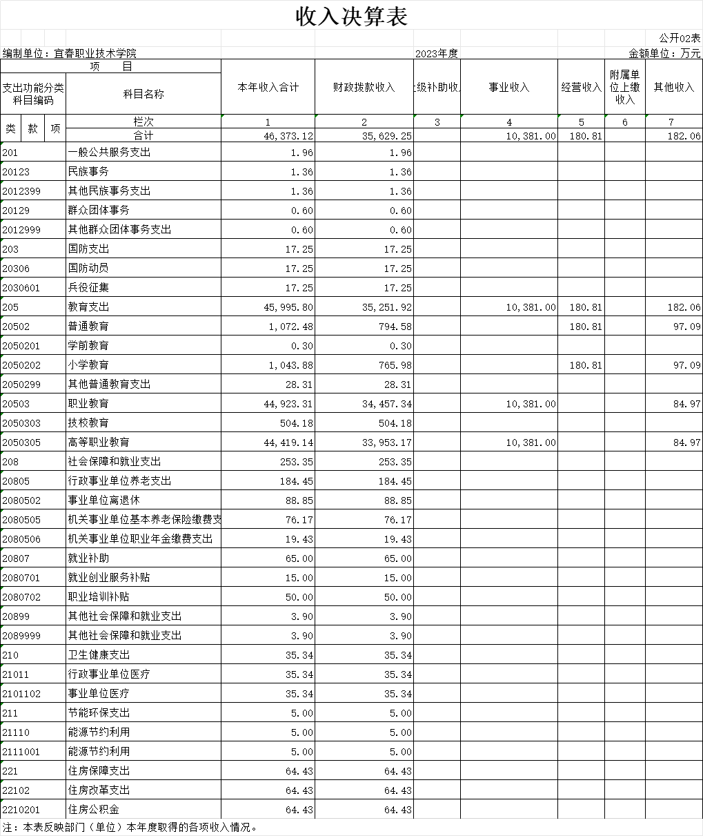二、收入决算表