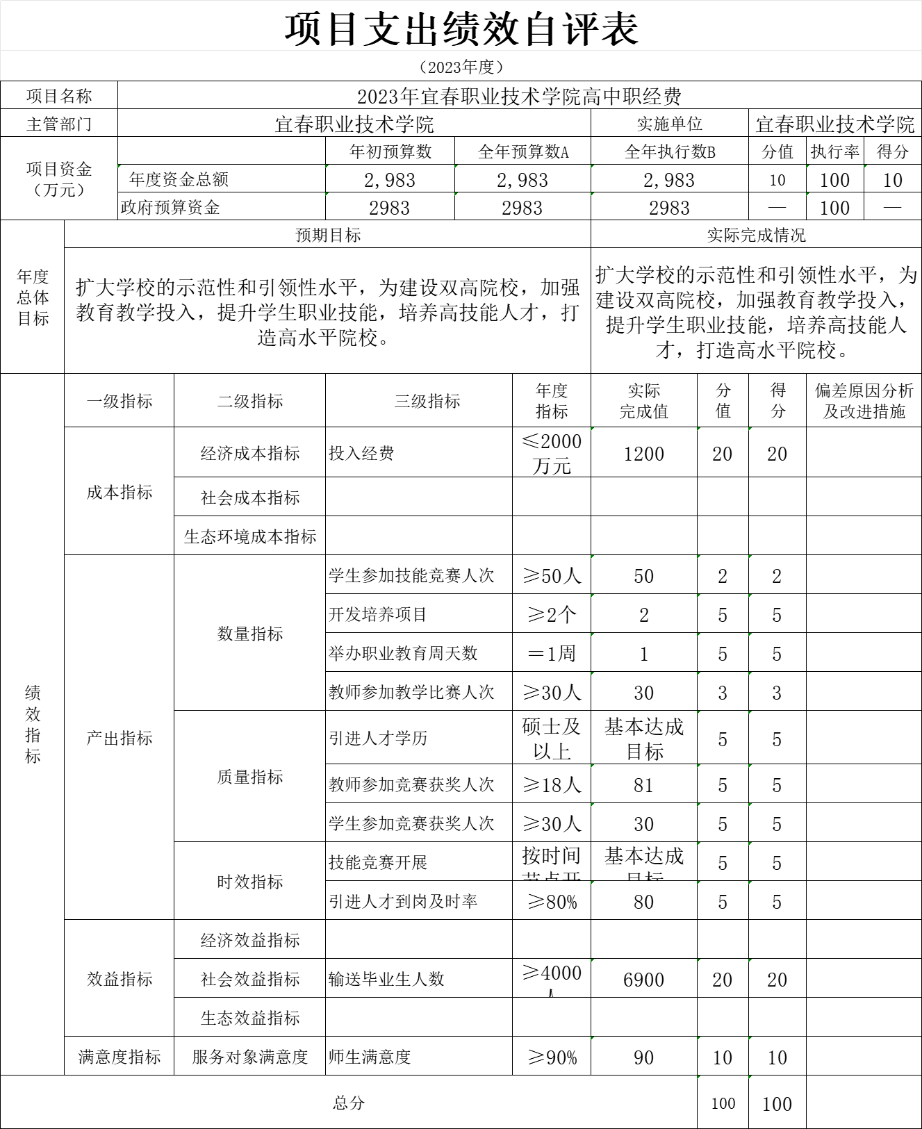 在效益指标设置时,主要针对学校特色,设置为培养学生技能和学生就业情况的三级指标,完成情况都在预期效果内,基本都没扣分。