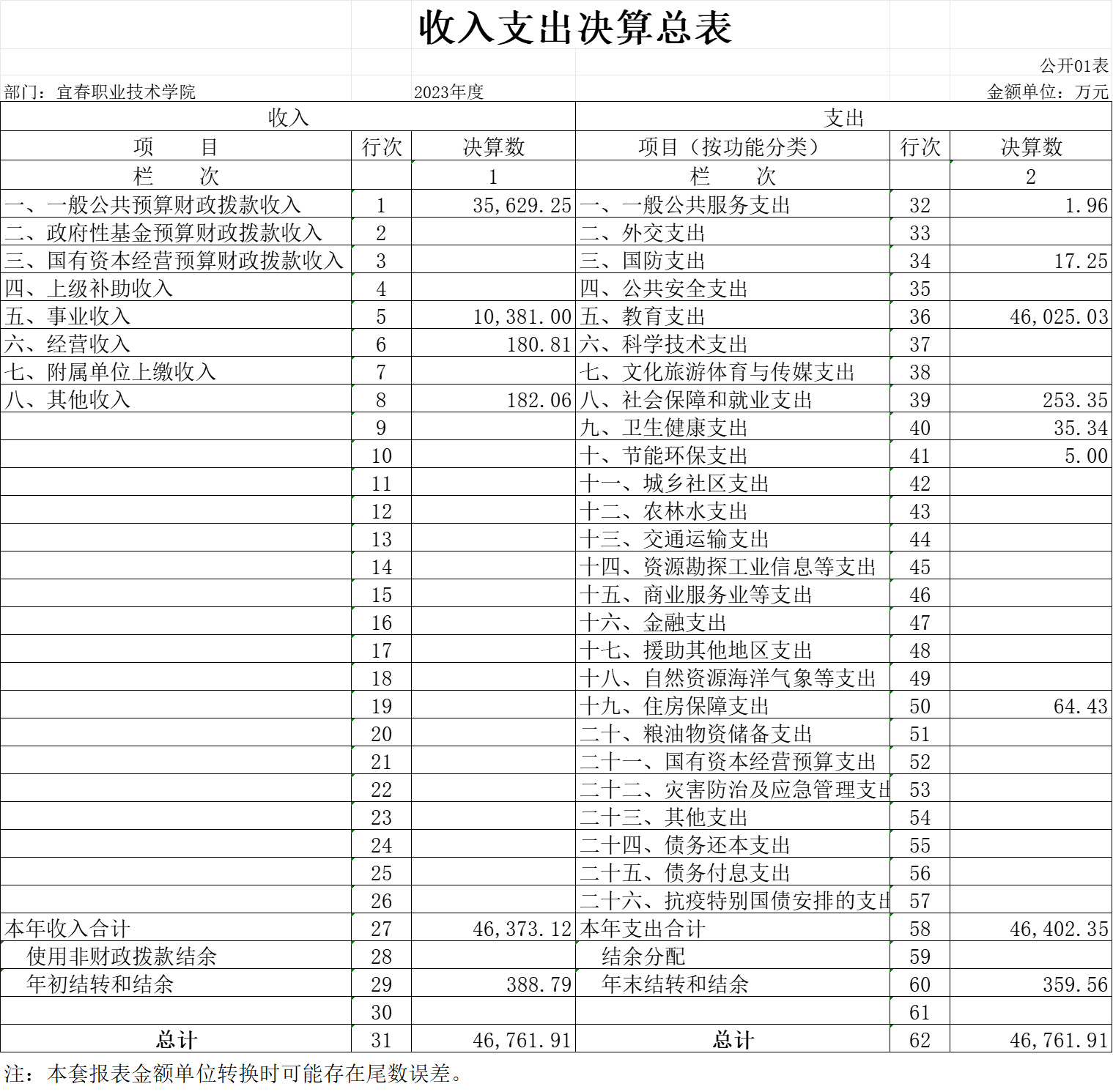 一、收入支出决算总表