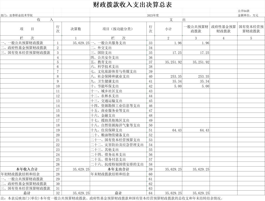 四、财政拨款收入支出决算总表
