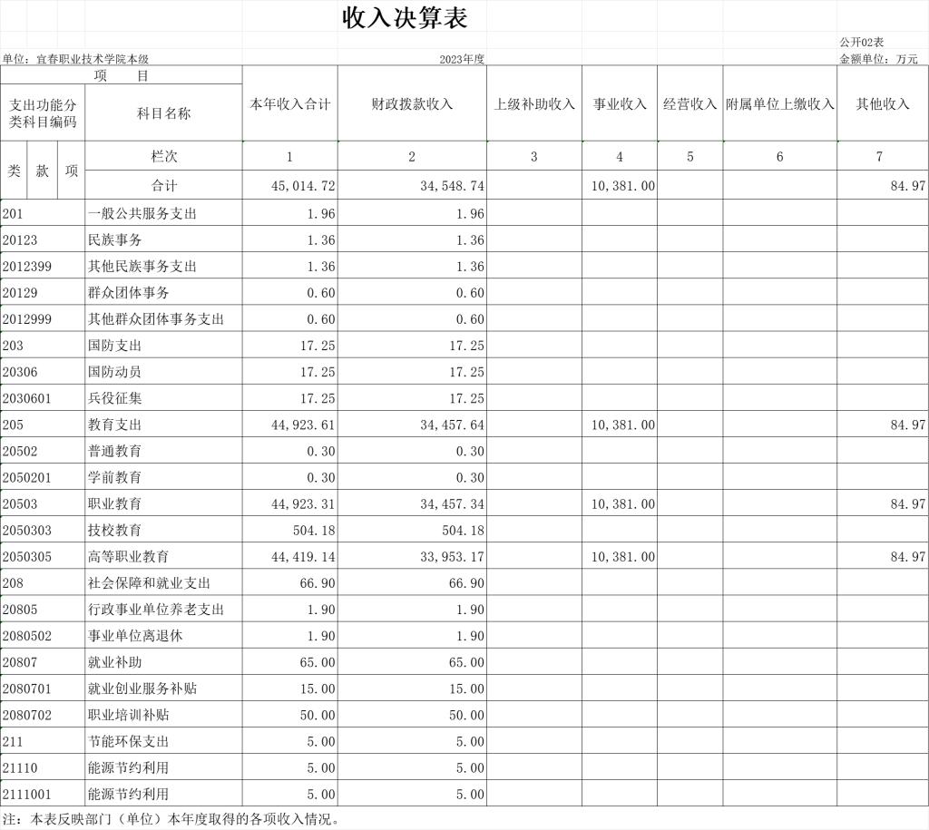 本单位2023年度收入总计45357.93万元,其中年初结转和结余343.22万元,比上年增加128.70万元,增长60%;使用非财政拨款结余和专用结余0万元,比上年增加(减少)0万元,增长(下降)0%;本年收入合计45014.72万元,比上年增加9810.93万元,增长27.87%,主要原因:为满足新校区教学需求进行了大量设备采购
