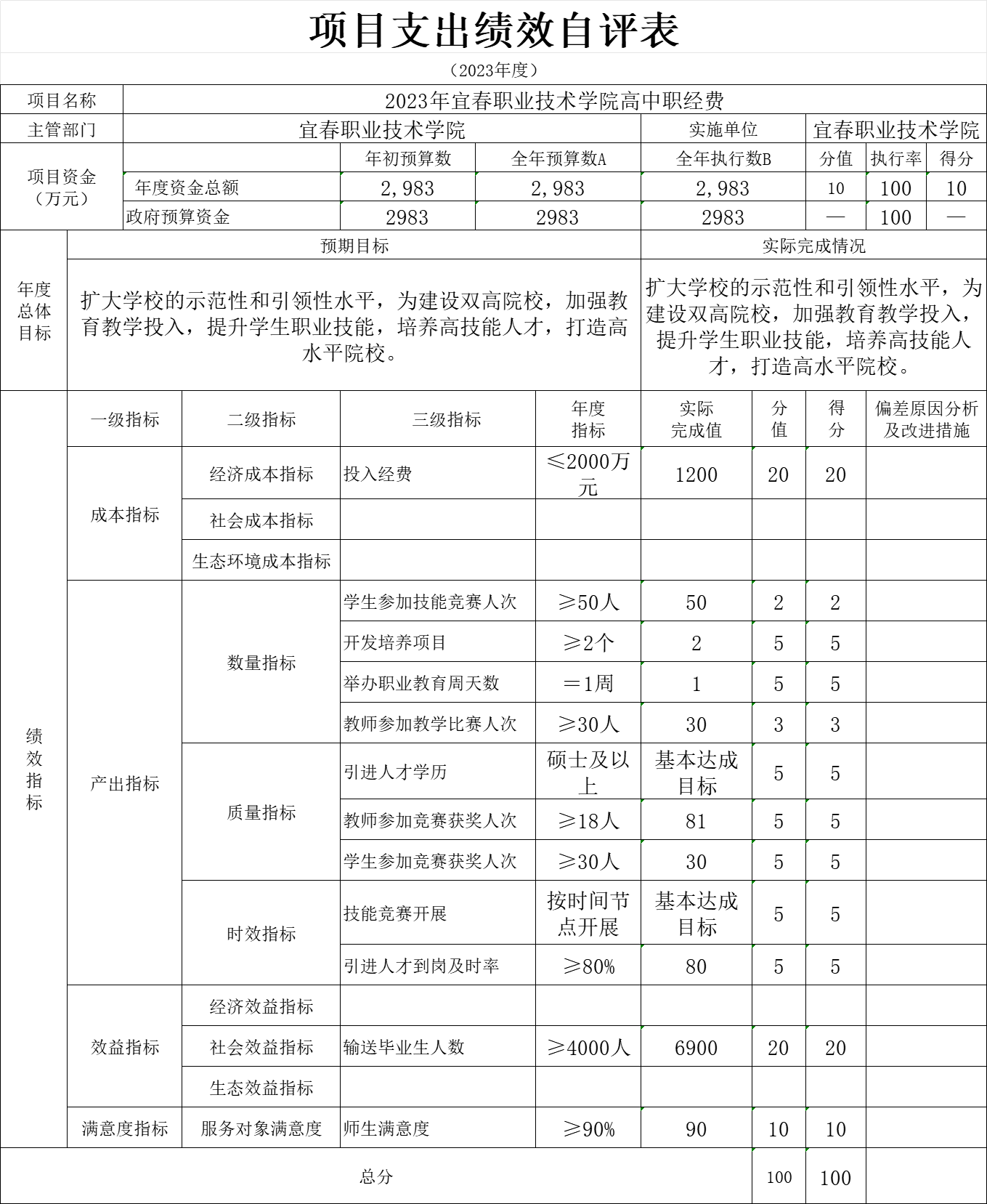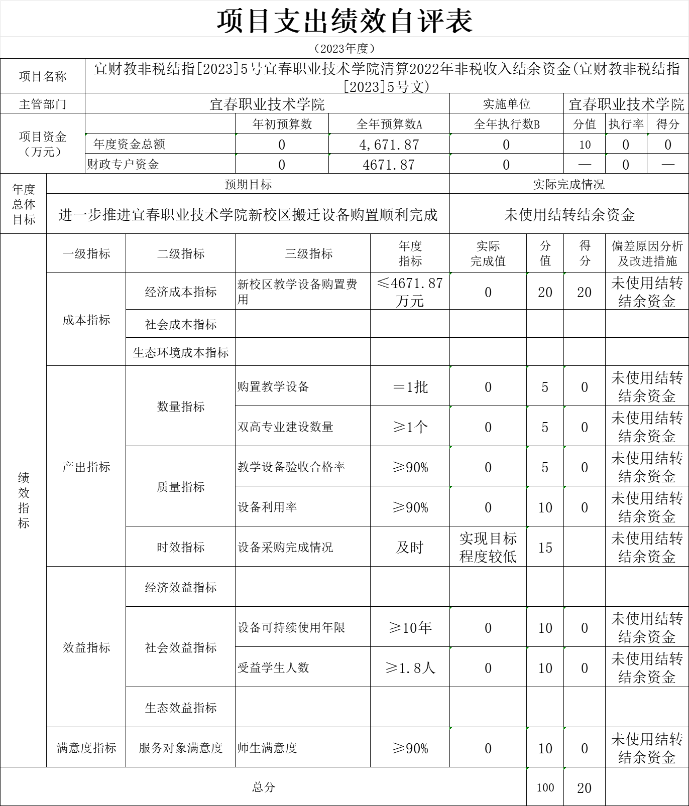 本单位2023年度支出总计45064.84万元,其中本年支出合计45064.84万元,比上年增加9989.75万元,增长28.48%,主要原因:为满足新校区教学需求进行了大量设备采购;结余分配  0万元,比上年增加(减少)0万元,增长(下降)0%;年末结转和结余311.10万元,比上年减少32.12万元,下降9.36%,主要原因:新校区搬迁工作结束,本单位支出恢复常态趋于平稳。