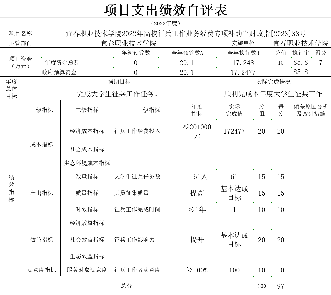 (二)国防支出年初预算数为0万元,决算数为17.25万元,完成年初预算的100,预决算差异主要原因:追加专项拨款