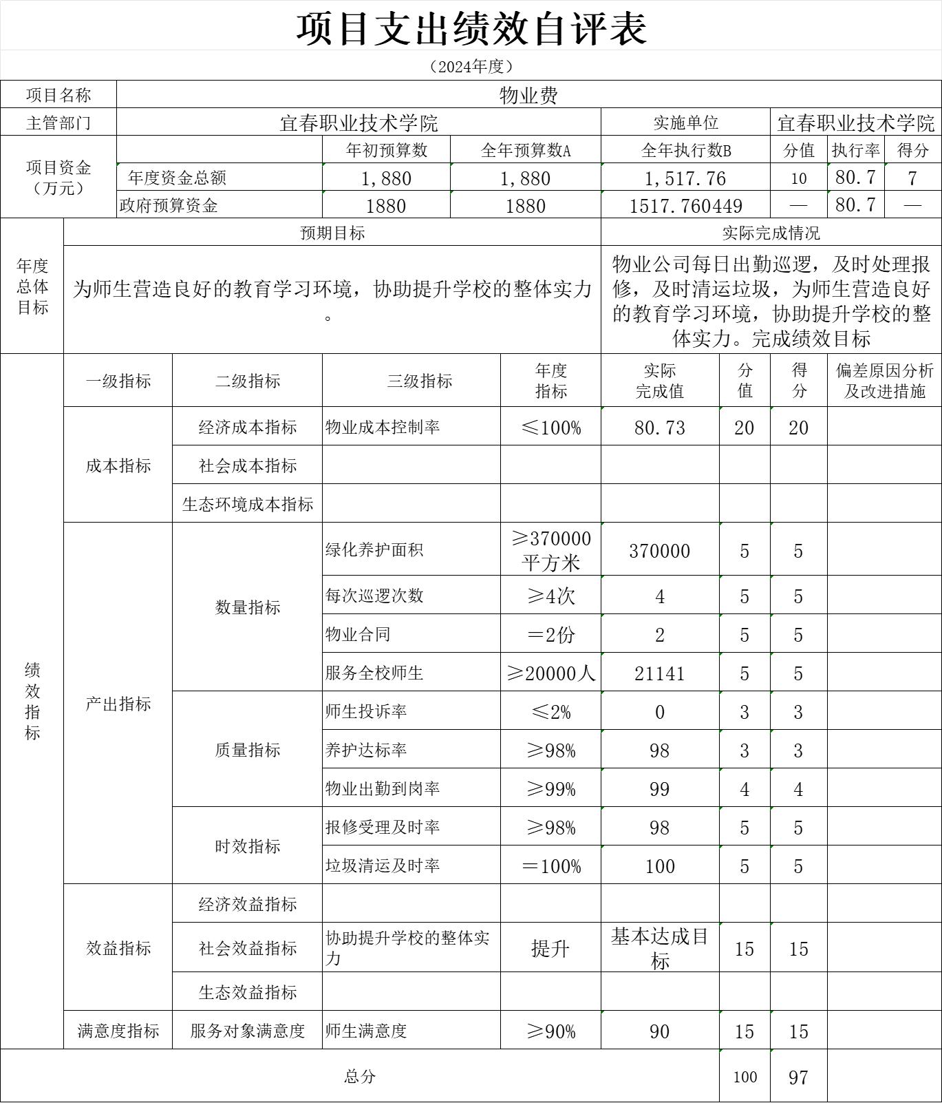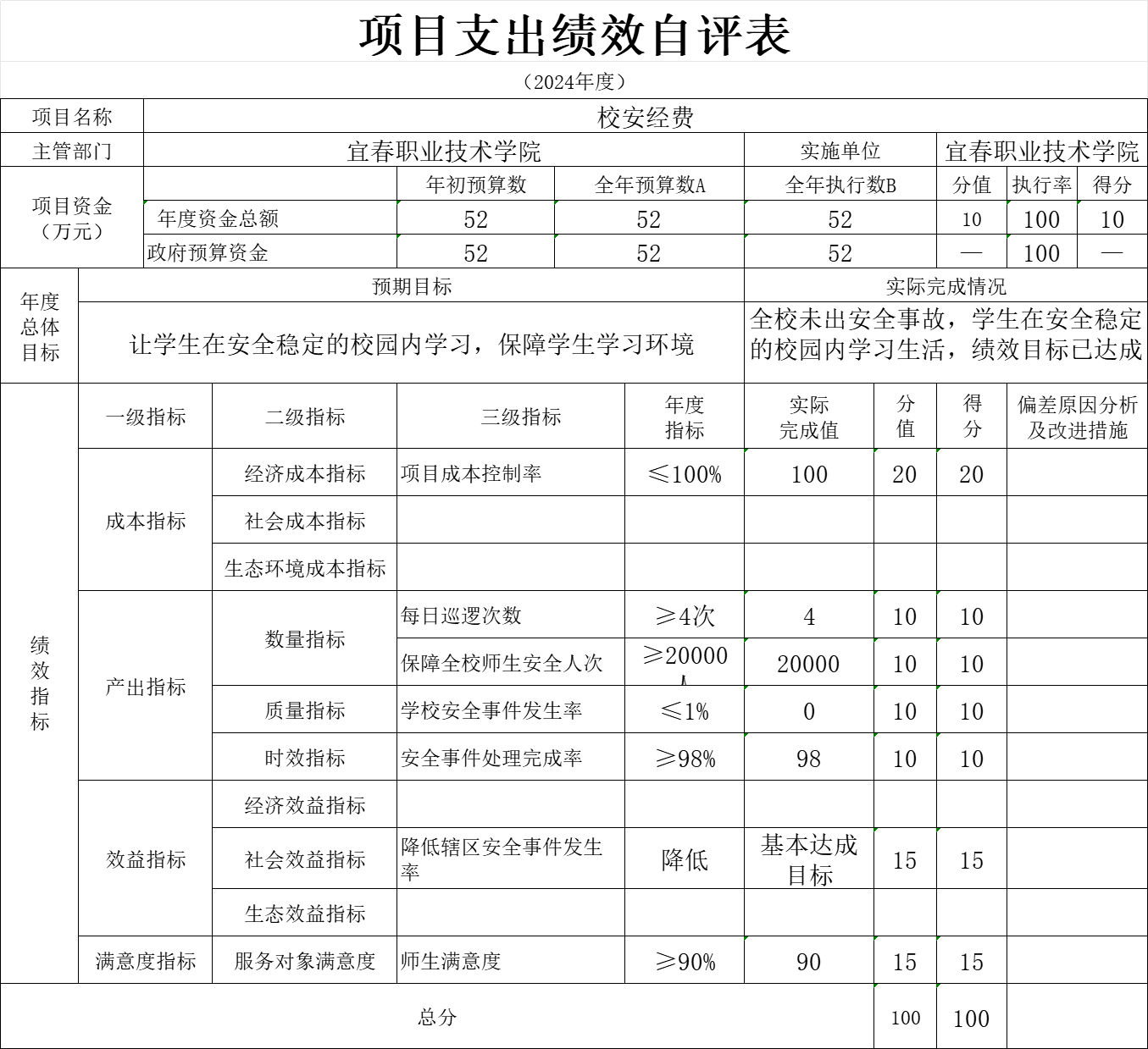 经过全面评价,职业技术学院下达的学生资助补助经费中央资金使用情况良好,达到了预期目标。资助对象筛选准确,资金发放及时、足额,政策知晓率较高,资金使用合规、高效,资助效果满意度较高。根据评分表(见附表),项目总得分为100分,属于优秀等级。