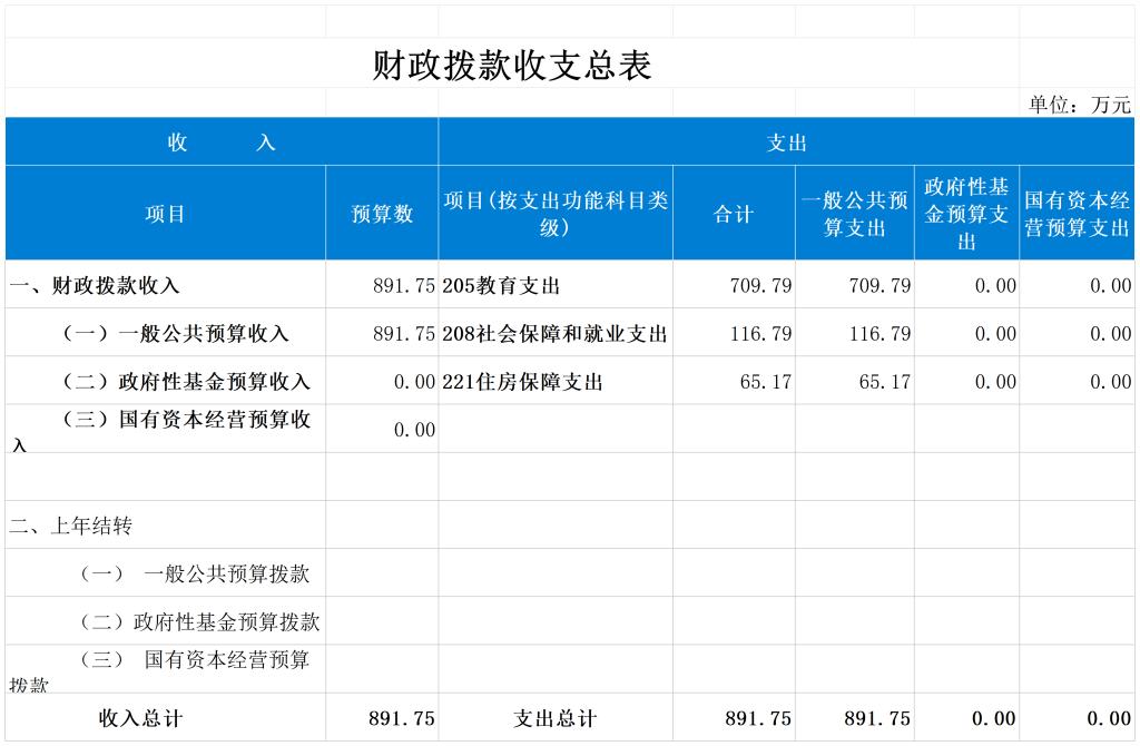 按支出功能科目划分:教育支出709.79万元,社会保障和就业支出116.79万元,住房保障支出65.17万元。
