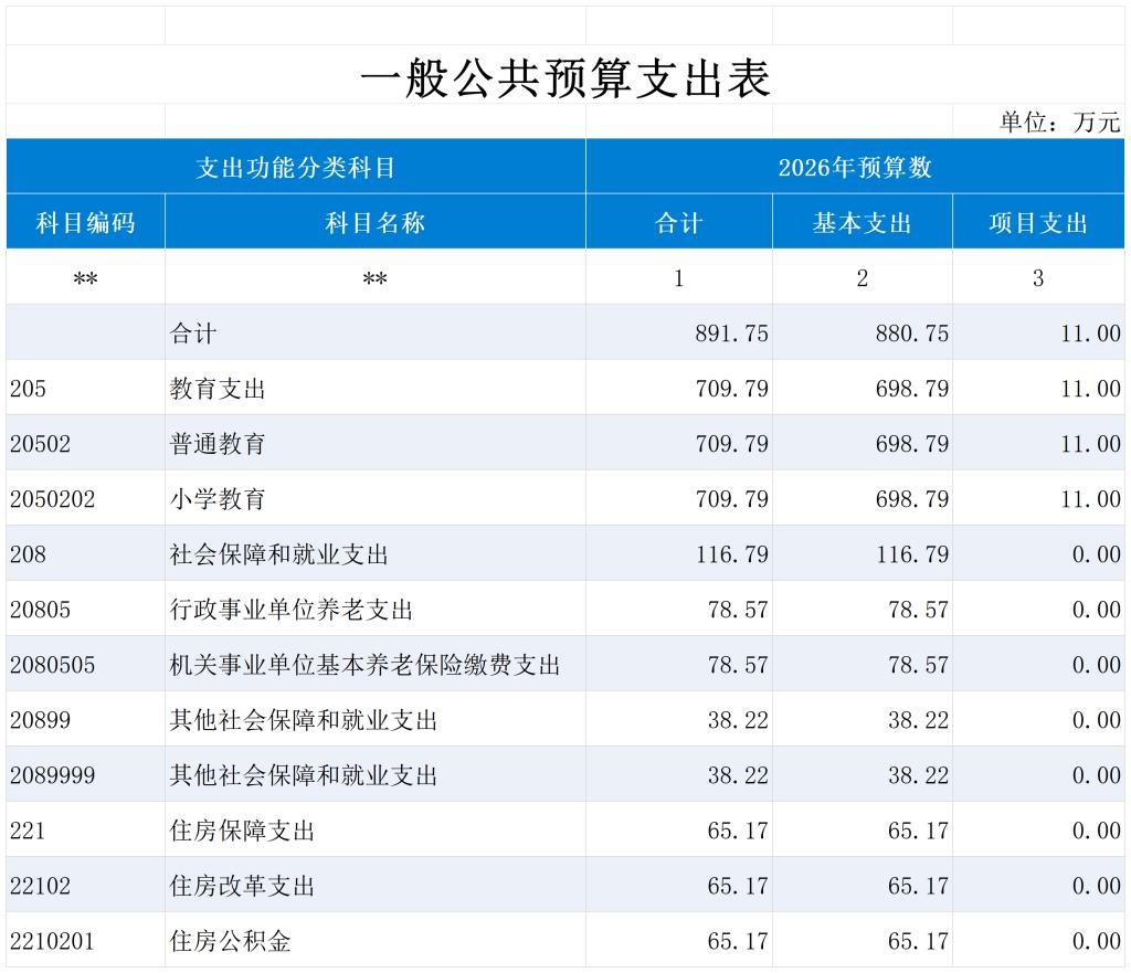 2026年宜春职业技术学院附属小学单位财政拨款支出预算总额891.75万元,较上年预算安排增加5.3万元。其中: