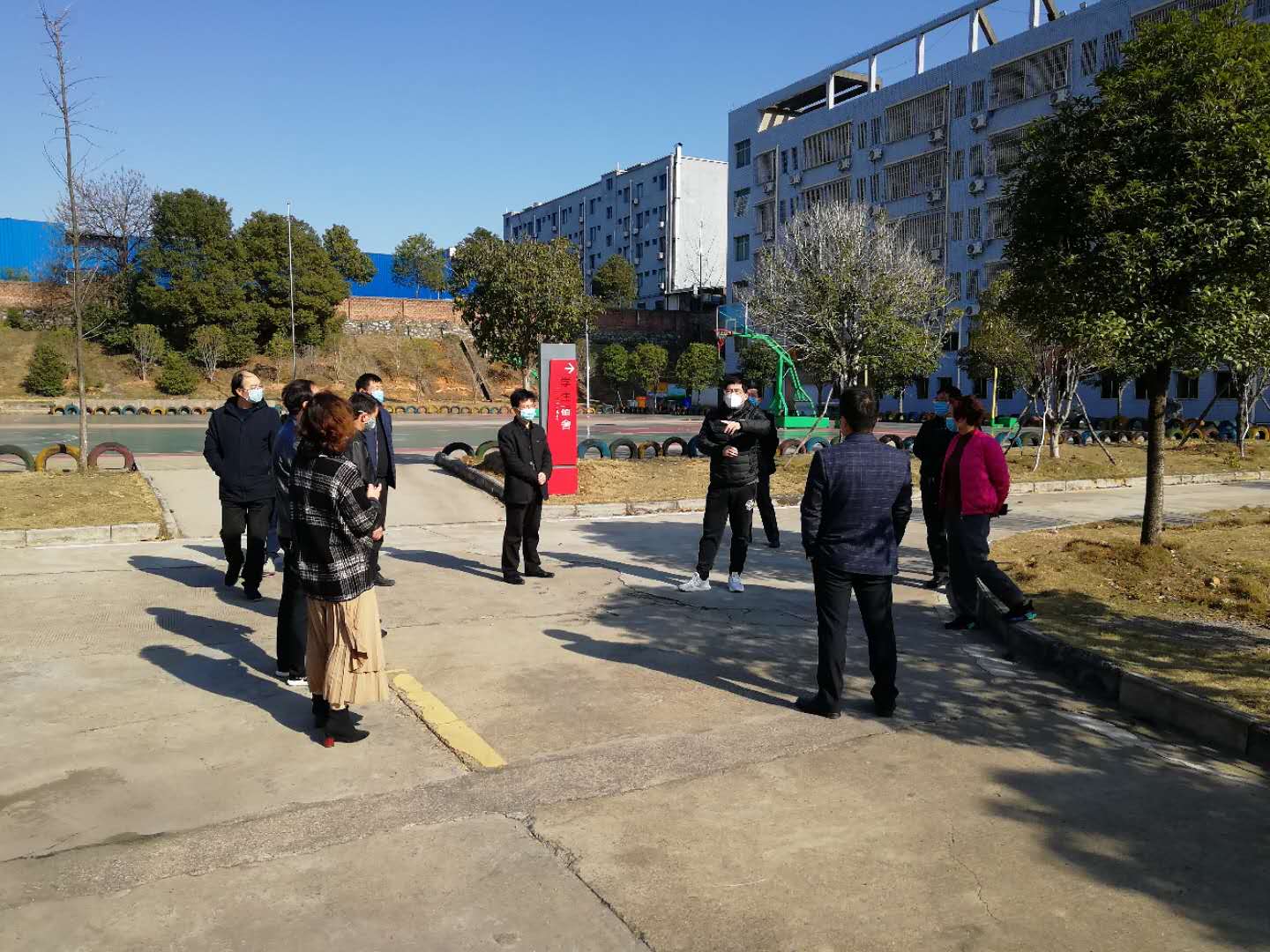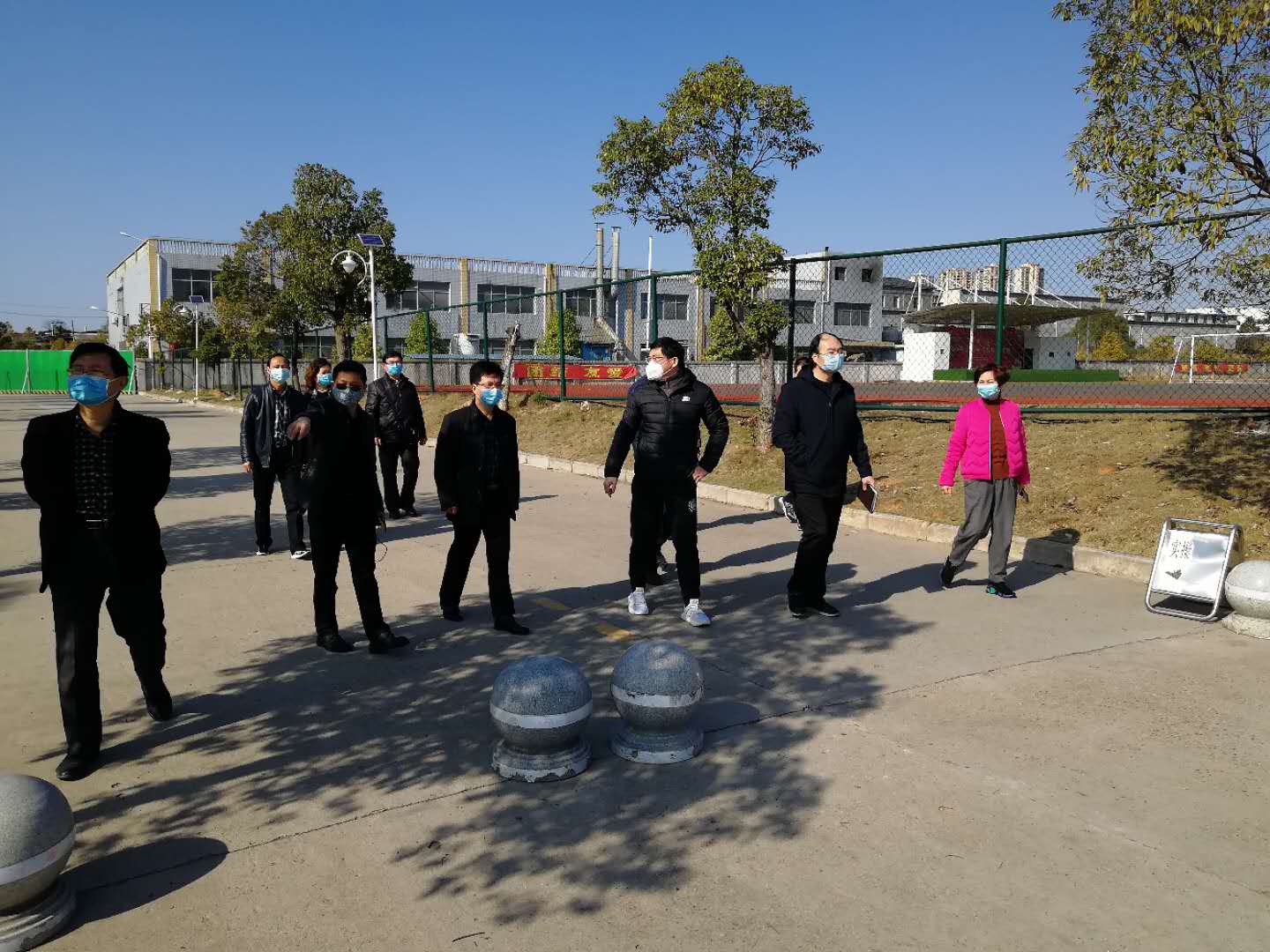 在实地查看后,党委副书记、校长杨云山马上安排了两台红外线体温测试仪供经开校区门卫使用,并指示学校附属医院在开学前要派专人到经开校区对防疫工作人员进行培训。最后,任军书记强调,疫情防控事关教师和学生生命健康安全,经开校区要计划好学生分批入学时间,开学前要做好教室、食堂、学生公寓等场所消毒通风,严格落实校门口人员出入登记和体测工作,落实好佩戴口罩、测量体温等措施,并实行日报告制度,确保肺炎疫情防控工作的胜利。