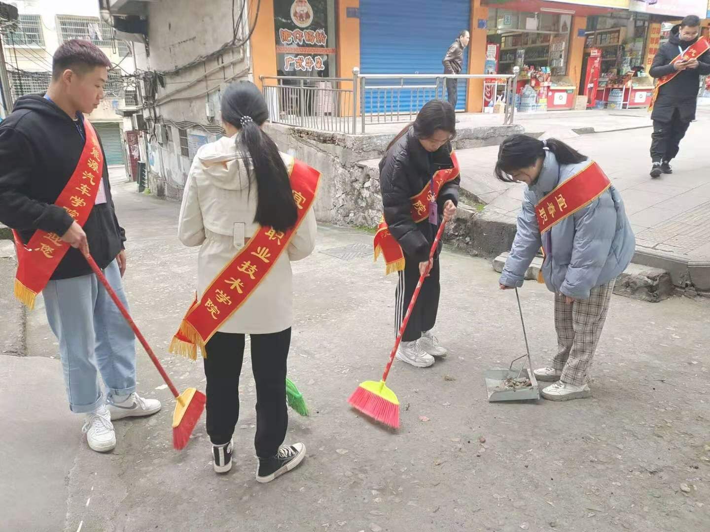 本站迅机电与新能源汽车学院周勤 学生记者潘宇晨)为弘扬雷锋精神,增强我院学子对雷锋精神的认识,促进实践能力、增强专业素质、激发同学们对学习的热情和动力。11月30日下午,机电与新能源汽车学院以“学雷锋,晒榜样”为主题在校门外的马路上开展了一场关于街道清理的志愿服务活动。