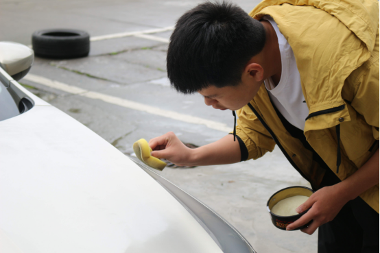 在实训大楼一楼西侧,开展了汽车美容技能大赛,检验汽车专业学生在汽车美容领域的知识和能力。