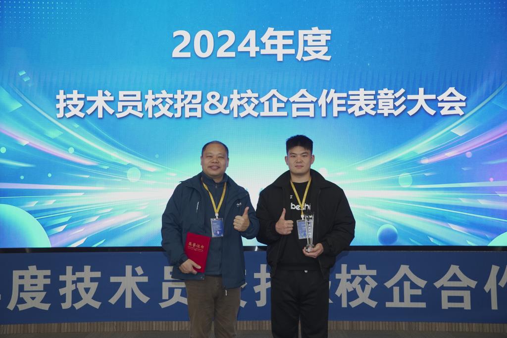 大会上,英国上市公司365被授予“创新成就奖”,2025届毕业生陈迎琪荣获“逐梦之星”奖并作为学生代表进行发言。大会还邀请机电与新能源汽车学院2021届和2024届优秀毕业生袁雪莹、邓胜京参加表彰大会。除此之外,学院2024年7月到宁德时代总部湖东基地实习的学生均受到企业高度评价,甘洋同学连续6个月绩效被部门评为A级。