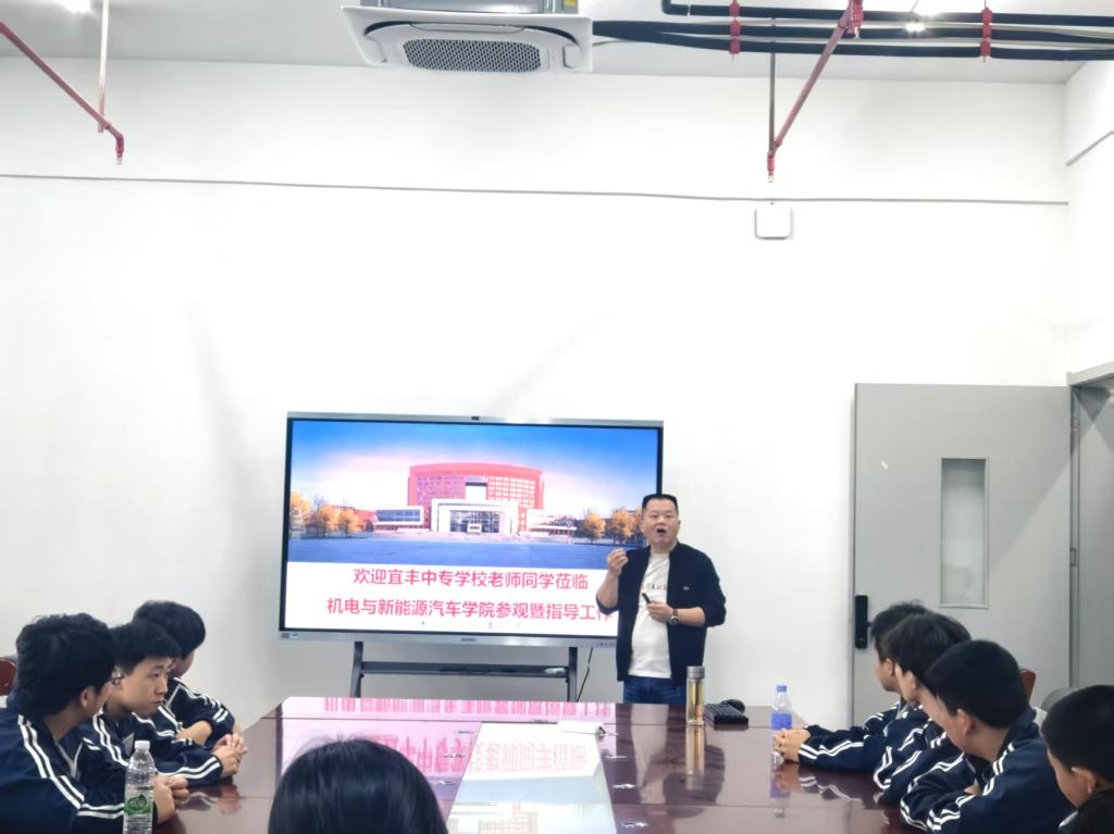 双方在新能源技术工程中心会议室召开座谈会。机电一体化教研室主任邓萍华对宜丰中专师生的到来表示热烈欢迎,并围绕学校的发展历程、办学理念、学院特色以及机电一体化专业的培养目标、课程设置、师资力量等方面进行全面介绍。