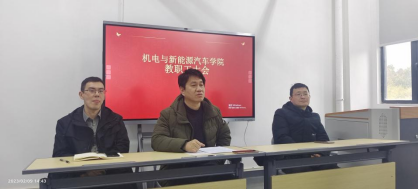 为了充分调动我院教职工工作积极性,不断提高教学质量、科研能力和管理水平。院长吴东平就《机电与新能源汽车学院校内效益绩效工资二次分配方案》进行说明并与全体教职工一起讨论本方案的考核细则。
