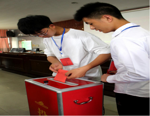 大会进行投票选举新一届机电与新能源汽车学院学生代表大会常务委员会委员。