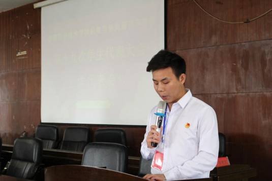首先宣布本届双代会选举结果。根据计票结果,彭思文、潘宇晨、陈江良当选机电与新能源学院新一届团总支委员会委员;彭思文、潘宇晨、陈江良当选学生会主席团成员,熊文轩、潘瑜芳、黎紫慧、刘鑫当选机电与新能源学院新一届学生会部门负责人。