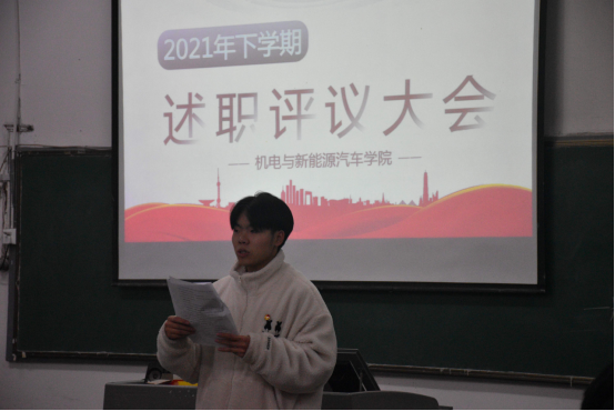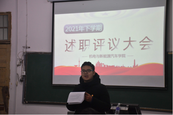 (本站讯机电与新能源汽车学院 周勤 学生记者彭思文)12月29日晚,机电与新能源汽车学院学生会在二教楼四楼半组织了2021年下半年述职评议会。本次活动由班长、团支书以及3名学生会主席团成员和4名学生会部门负责人参与评议。院党总支副书记宋秋奴老师,院团总支书记周勤老师出席本次述职会议。