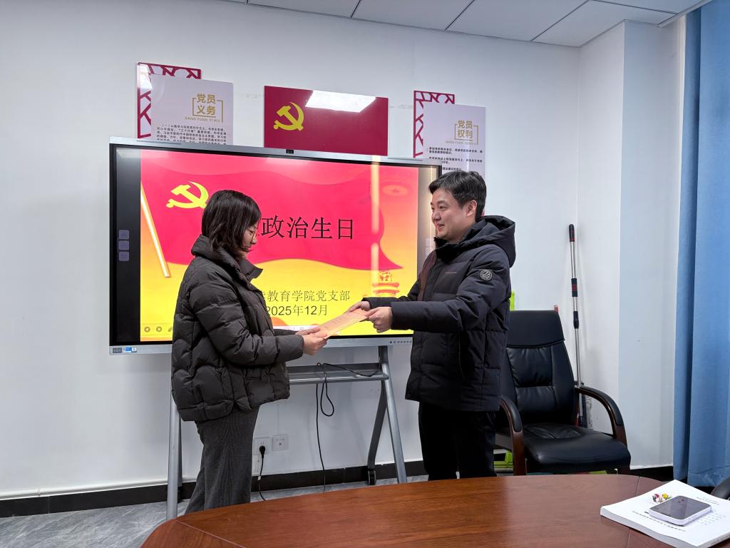 为进一步强化党员身份意识与责任担当,锤炼党性修养,12月26日下午,继续教育学院党支部以“忆初心、强党性、暖人心”为主题,组织开展“党员政治生日”主题党日活动,党支部书记周昊主持活动,全体党员参加。