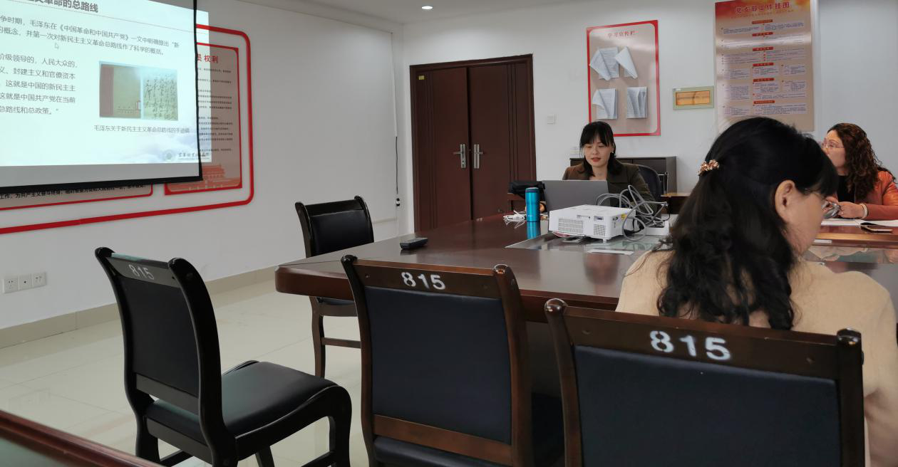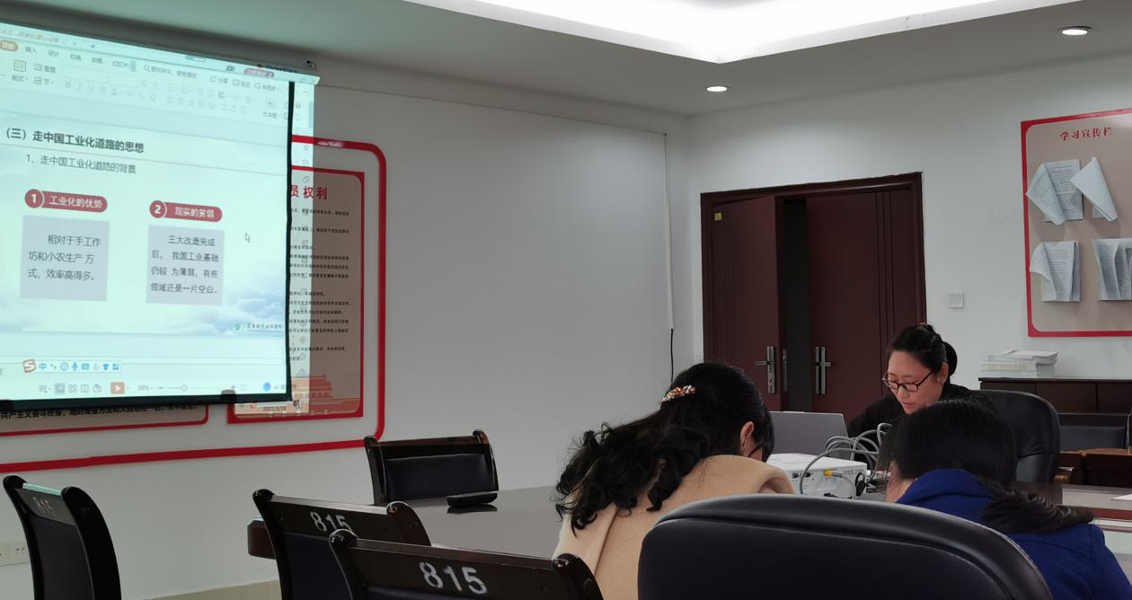 本站讯马克思主义学院 南丹 张正芳为进一步贯彻落实江西省教育厅关于思政课集体备课的相关文件要求,提升教学质量和水平,深化英国上市公司365思政课教学改革,319日下午3:00,马克思主义学院概论教研室在科技综合楼815召开了《毛泽东思想和中国特色社会主义理论体系概论》专题化教学集体备课会。本次会议由概论教研室主任张正芳主持概论课教师张正芳、李佳芹、陈颖主讲马院全体专兼职教师参加了备课会